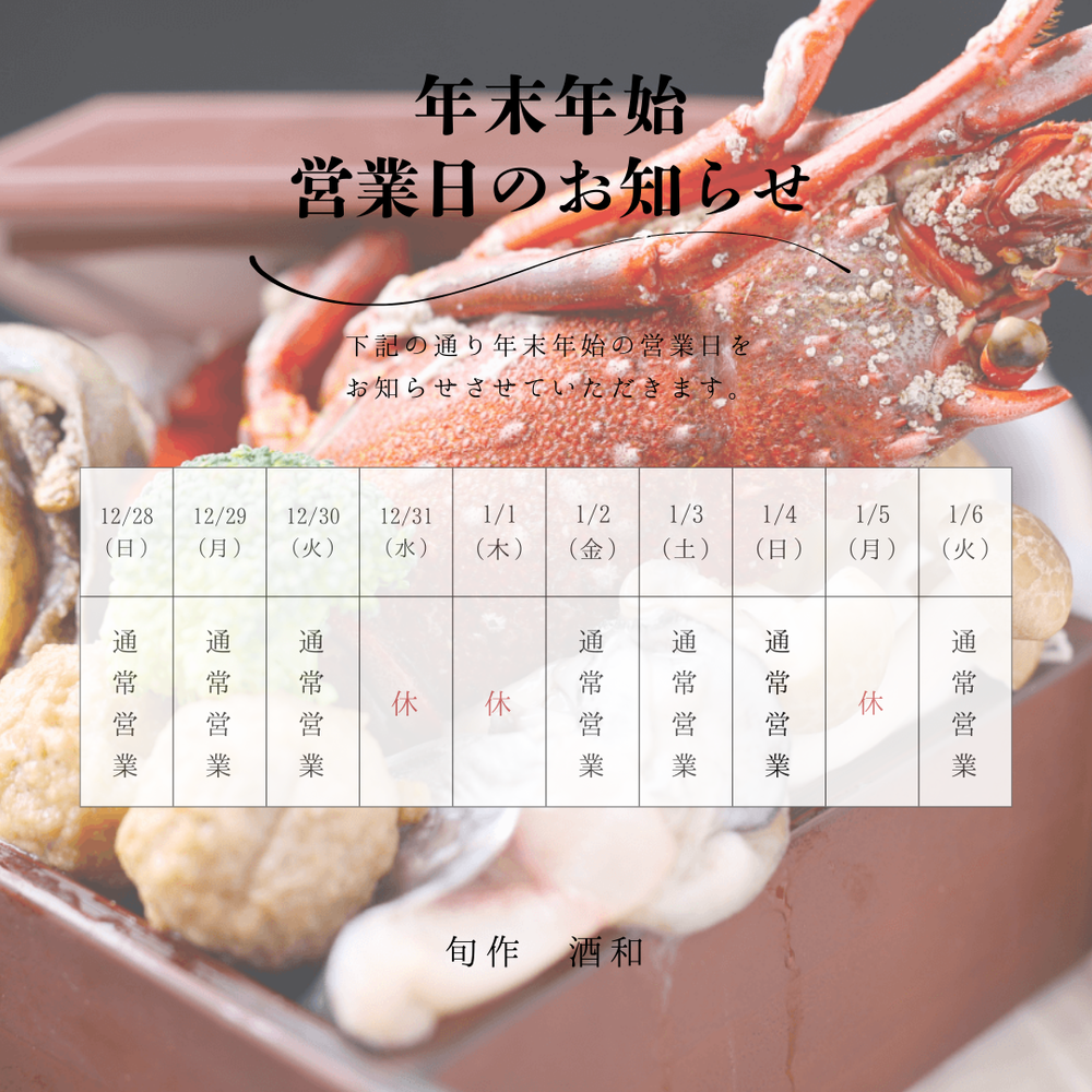 誠に勝手ながら、当店の年末年始の営業日は下記のとおりとさせていただきます💁♂️